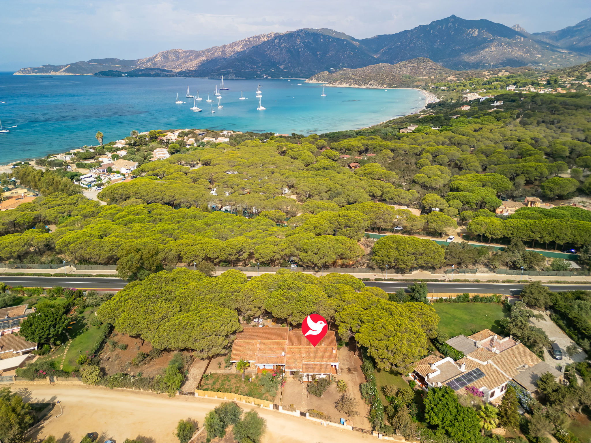 Cosy villa detached, surrounded by trees. On the outskirts, 1 km from the centre of Villasimius, in a quiet, sunny position, 200 m from the sea, 200 m from the beach, in the countryside. Private: beautiful garden with flowers and trees. Outdoor shower, patio, barbecue. Motor access (300 m via unmade road). Parking on the premises. Shop, supermarket, restaurant, bar 200 m, bus stop "via Roma La Lanterna" 3 km, railway station "Cagliari" 50 km, ferry "Cagliari" 50 km, sandy beach "Spiaggia Del Riso" 200 m. Sports harbour 1 km, marina 1 km, golf course (18 hole) 1 km. Nearby attractions: Punta Molentis 5 km, Costa Rei 15 km, Cagliari 50 km. Please note: car recommended. Loading and unloading of baggage is possible at the holiday house.