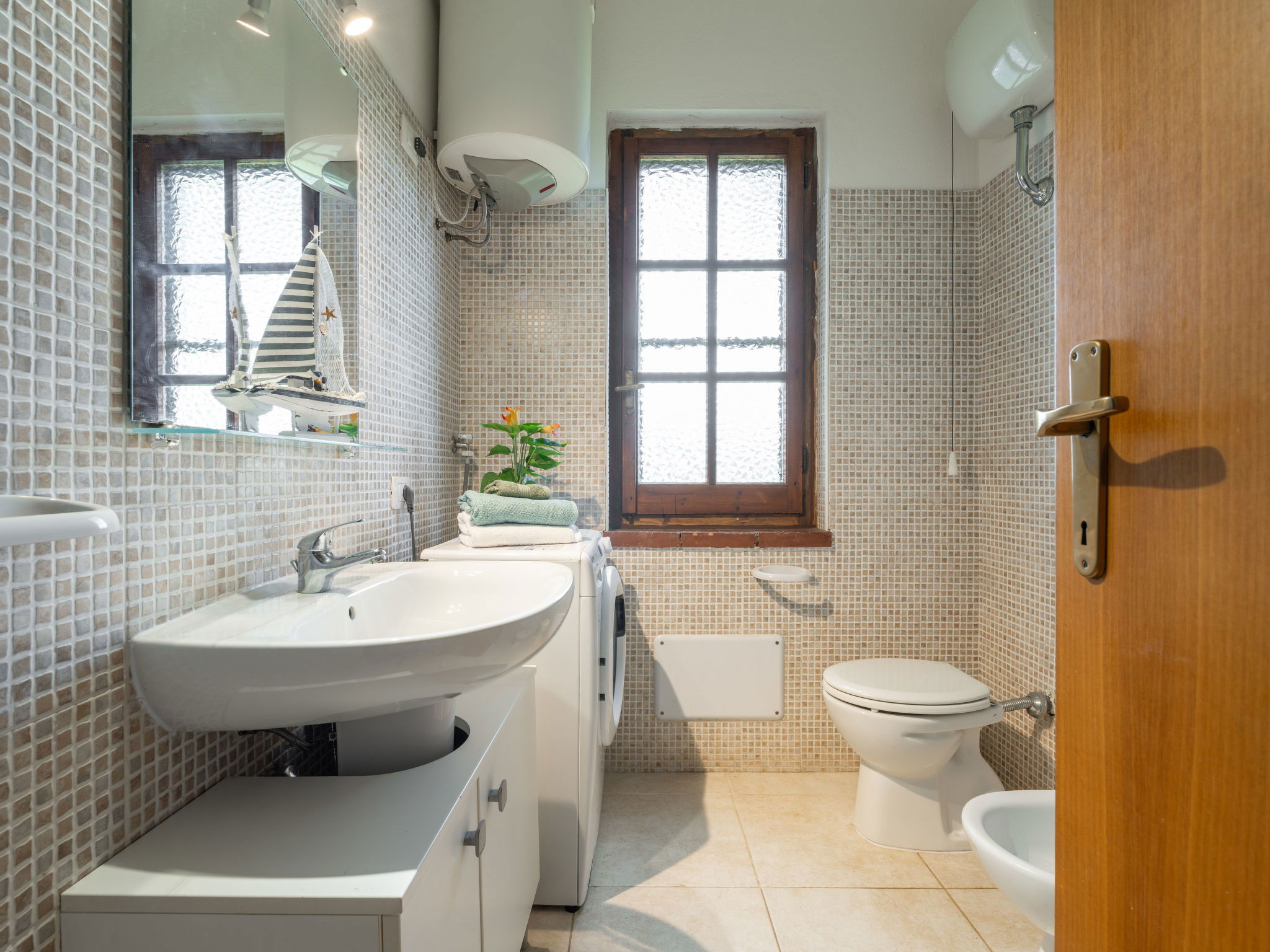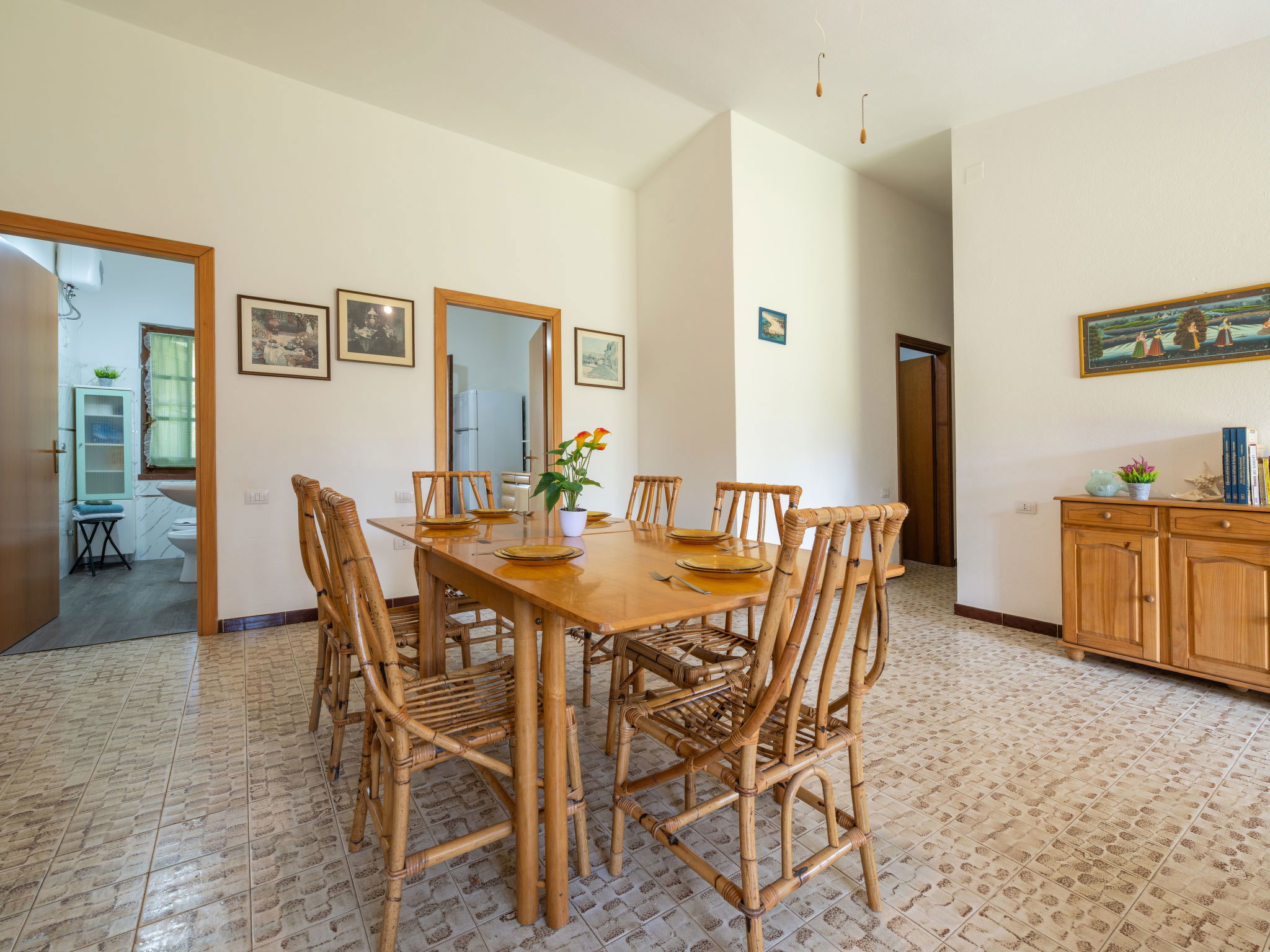 "Itaca", 4-room villa 97 m2. Comfortable and cosy furnishings: living/dining room with Scandinavian wood stove (only for decoration), dining table and digital TV. Exit to the garden, to the veranda. 2 double bedrooms, each room with air conditioning. 1 room with 3 beds and air conditioning. Kitchen (oven, dishwasher, 4 gas rings, toaster, kettle, microwave). Exit to the veranda. 2 showers/bidet/WC. Air-conditioning, forced-air heating. Heating not available in all rooms. Large patio, large garden. Barbecue, deck chairs. View of the countryside. Facilities: washing machine, children's high chair, baby cot (extra), hair dryer. Internet (WiFi). Please note: (extra). Maximum 1 pet/ dog allowed. IT111105C2000S9612