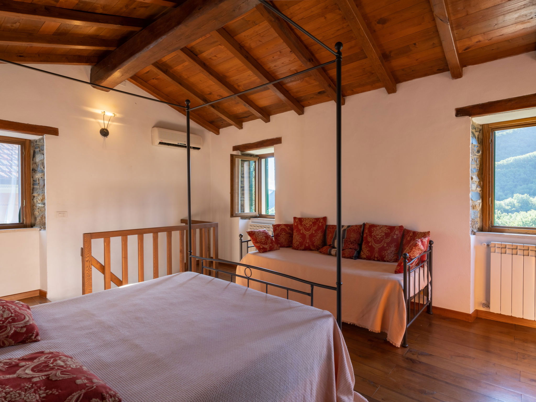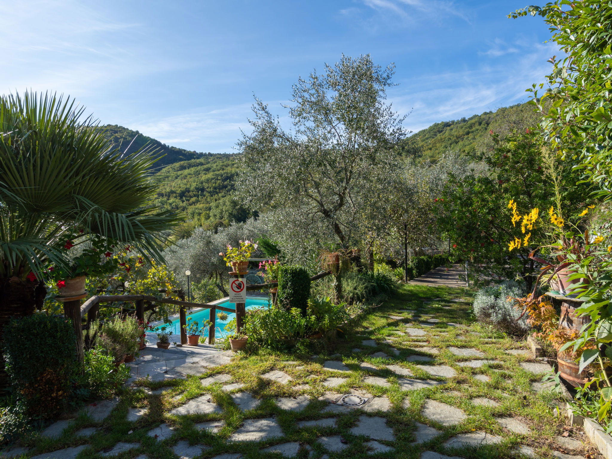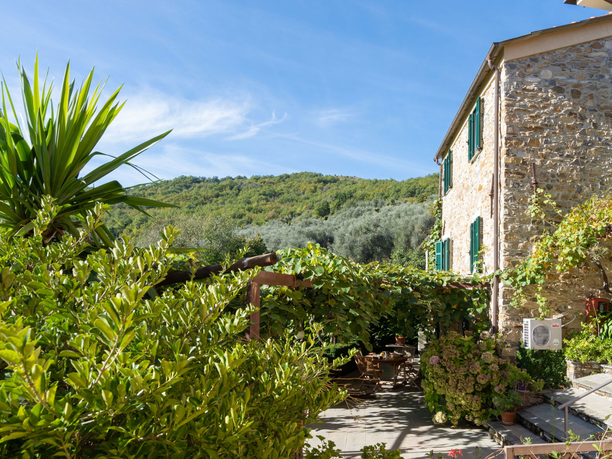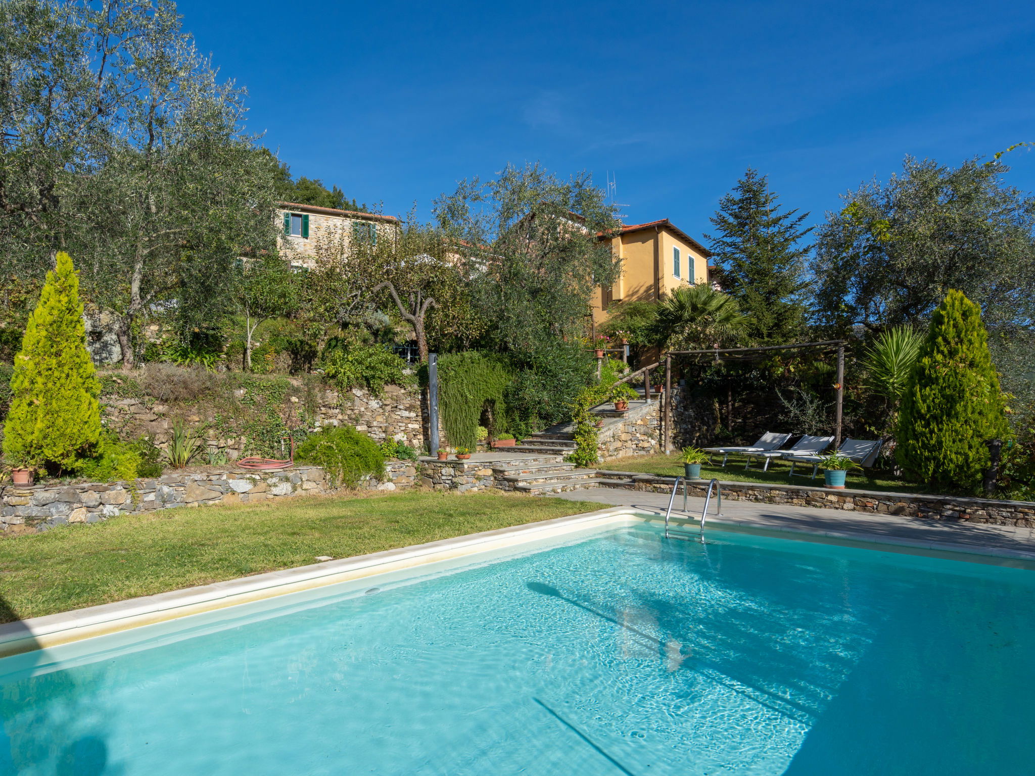 Beautiful, rustic country house "I Ciasi", 450 m a.s.l., 2 storeys. Above Ville San Sebastiano, 2.5 km from the centre of Ville San Pietro, 21 km from the centre of Imperia, in a sunny, elevated position on a slope, 20 km from the sea, in the countryside. Private: beautiful, well-kept terraced garden with lawn and wildlife garden, lawn for sunbathing, swimming pool (10 x 5 m, depth 120 cm, seasonal availability: 01.May. - 01.Oct.). Outdoor shower, patio, pergola, pool maintenance by the owner/gardener. In the house: bicycles available. Parking on the premises. Shop 4 km, supermarket 16 km, bus stop 310 m, sandy beach "Imperia Borgo Marina" 22 km. Local sale of farm products. Please note: part of the house is closed and unoccupied. The owner lives on the same property.