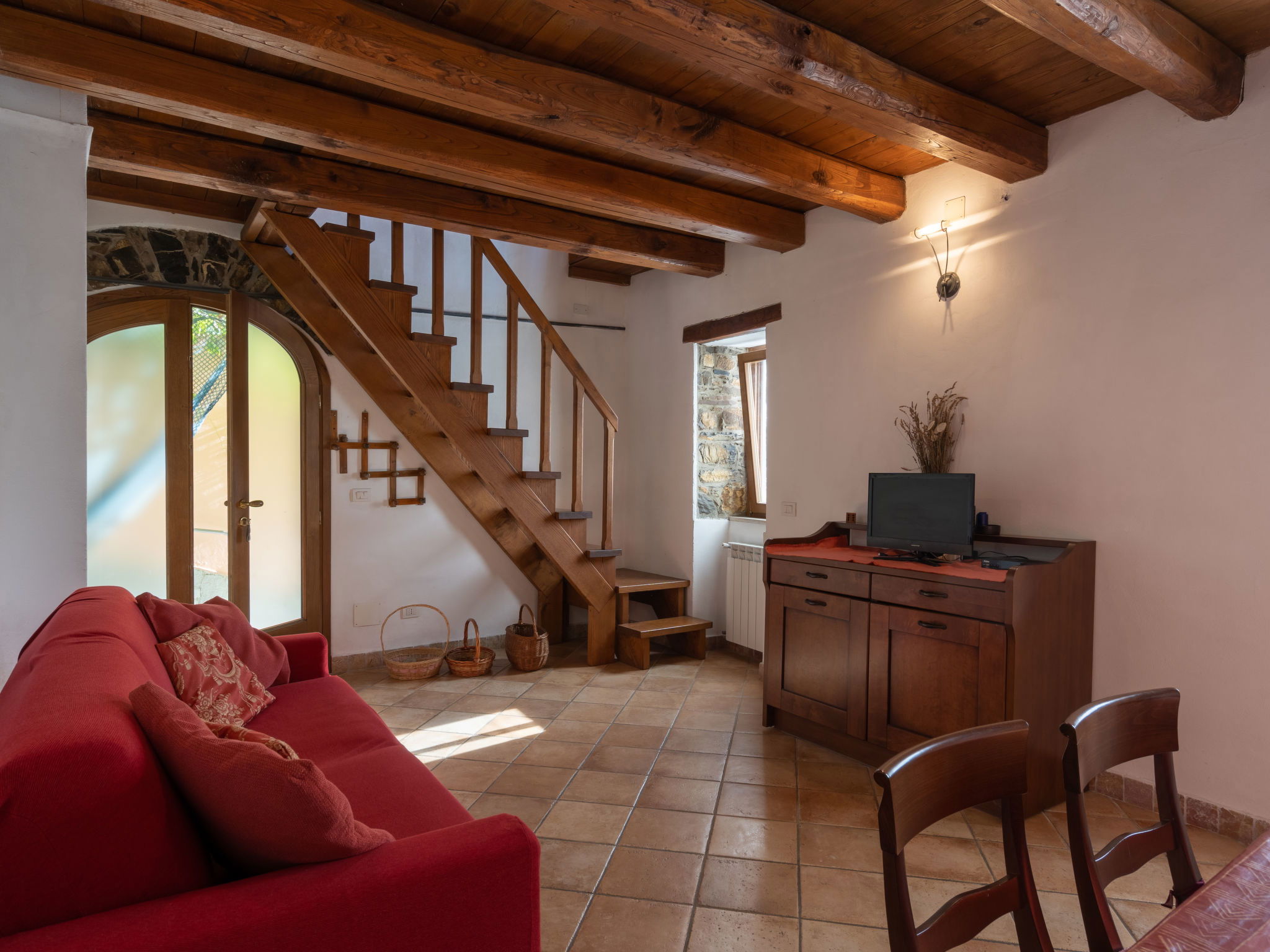 "I Ciasi ", 2-room house 70 m2 on 2 levels. Cosy and wooden furniture furnishings: living/sleeping room with 1 double sofabed, dining table and satellite TV. Open kitchen (oven, 4 gas rings, toaster). Shower/WC. Heating available only from 01.11. to 31.03. Upper floor: 1 open large room with 1 bed and 1 double bed. Gas heating, air-conditioning. Patio. Deck chairs. Marvellous panoramic view of the mountains and the countryside. Facilities: children's high chair, baby cot. Internet (WiFi, free). Maximum 2 pets/ dogs allowed. IT008010B593X78HNV