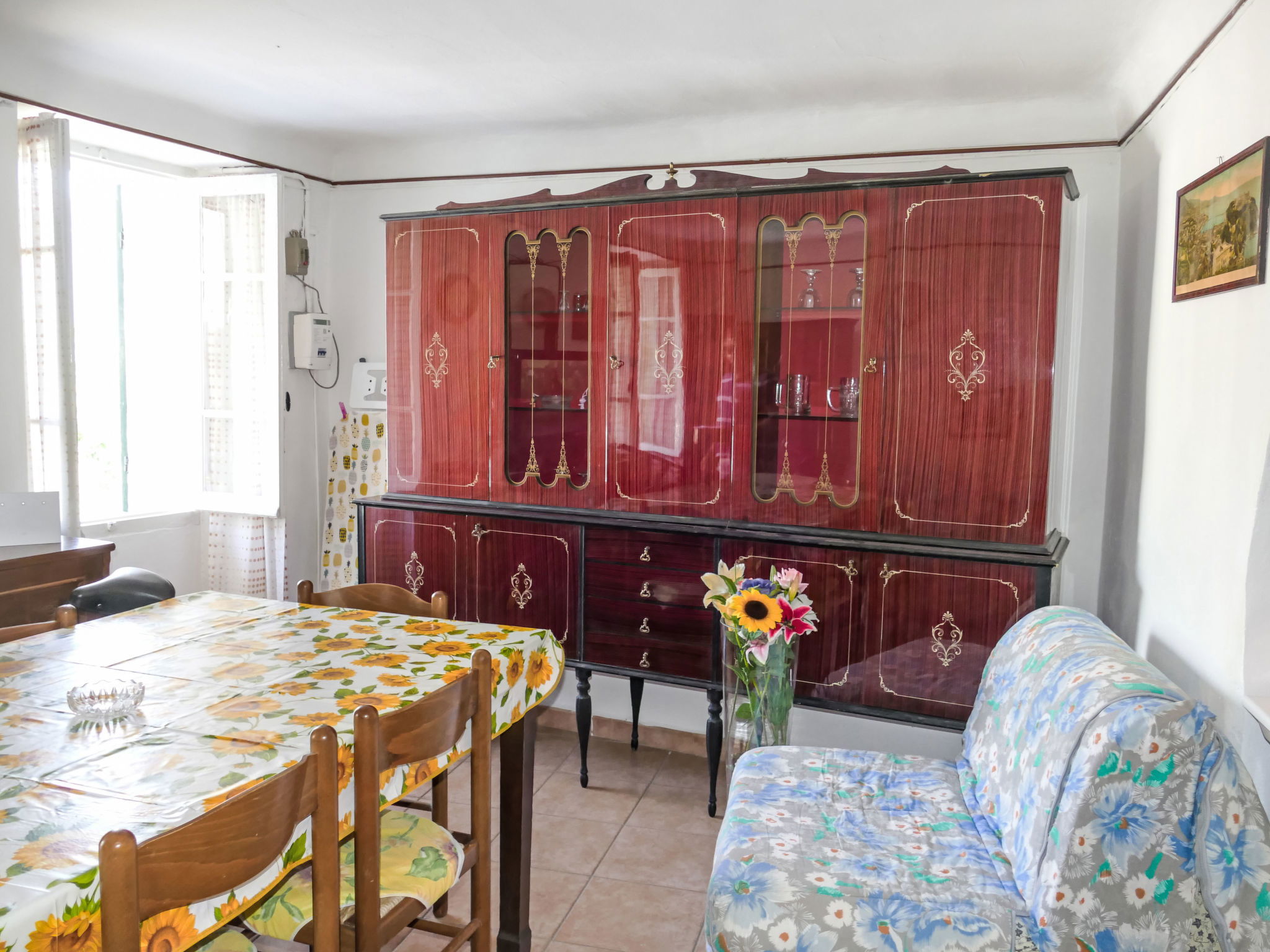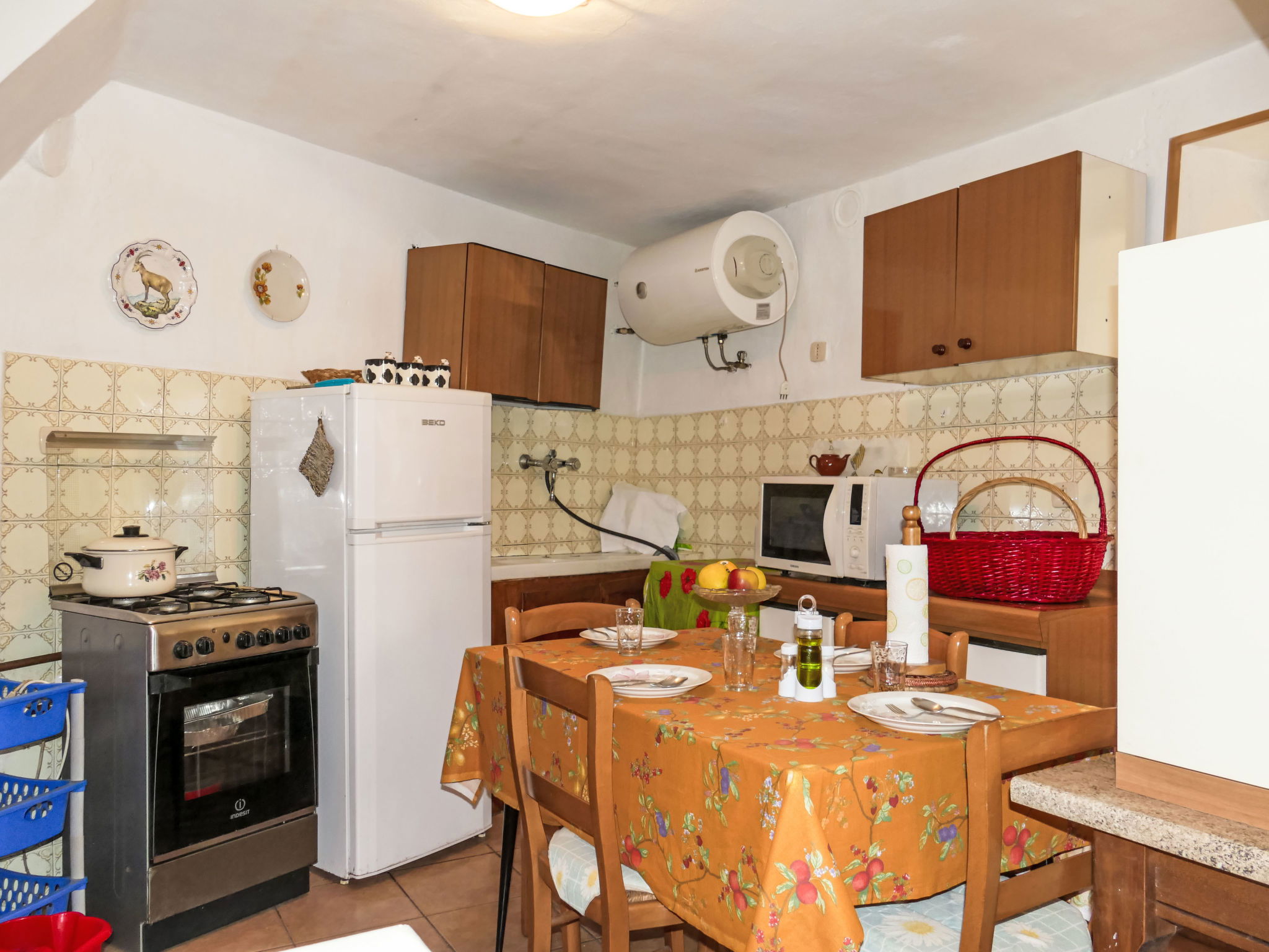 "Alberto", 3-room apartment 90 m2 on 1st floor. Very simple and rustic furnishings: living/dining room with 1 sofabed (140 cm, length 200 cm). Exit to the balcony. Kitchen-/living room (mini-oven, oven, 4 gas rings, toaster, kettle, microwave). Exit to the balcony. Hip bath/bidet/WC. Electric heating. Heating available only from 01.11. to 15.04. Upper floor: (steep stair), 2 double bedrooms. 2 balconies 6 m2. Balcony furniture. View of the countryside and the resort. Facilities: washing machine, hair dryer. Internet (WiFi, free). Please note: maximum 1 pet/ dog allowed. Private entrance. IT008010C2V6KWU79R