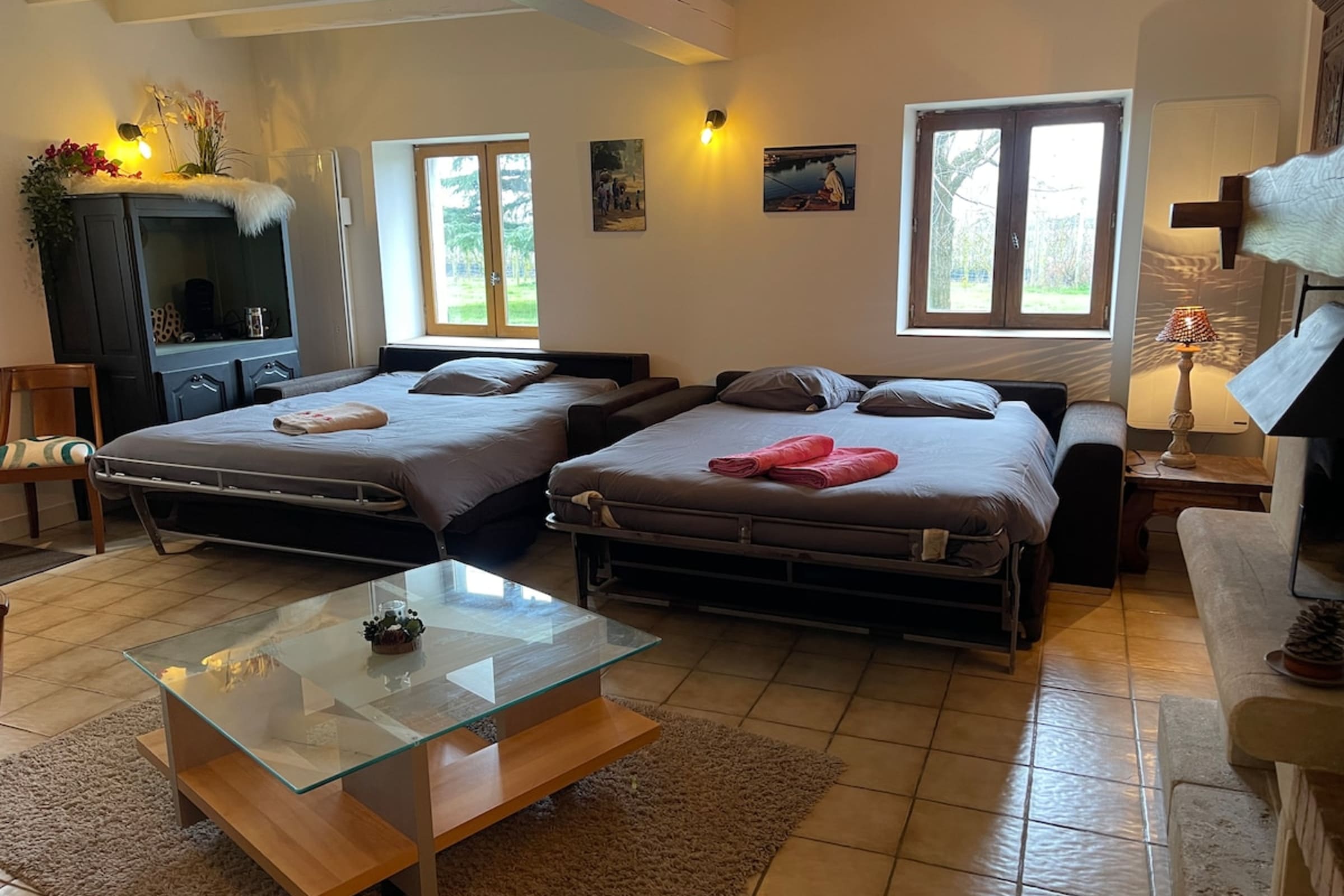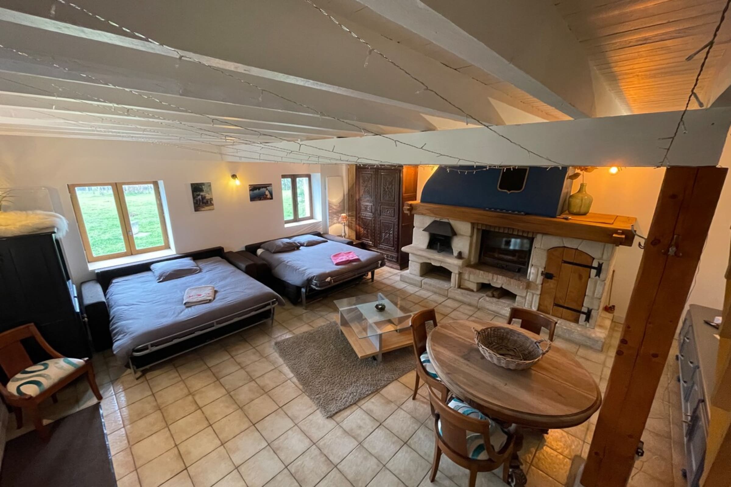 Outside, you’ll find a variety of amenities available throughout your stay: an outdoor table and chairs, a barbecue, a ping-pong table, and outdoor games in the park (croquet, badminton, etc.).