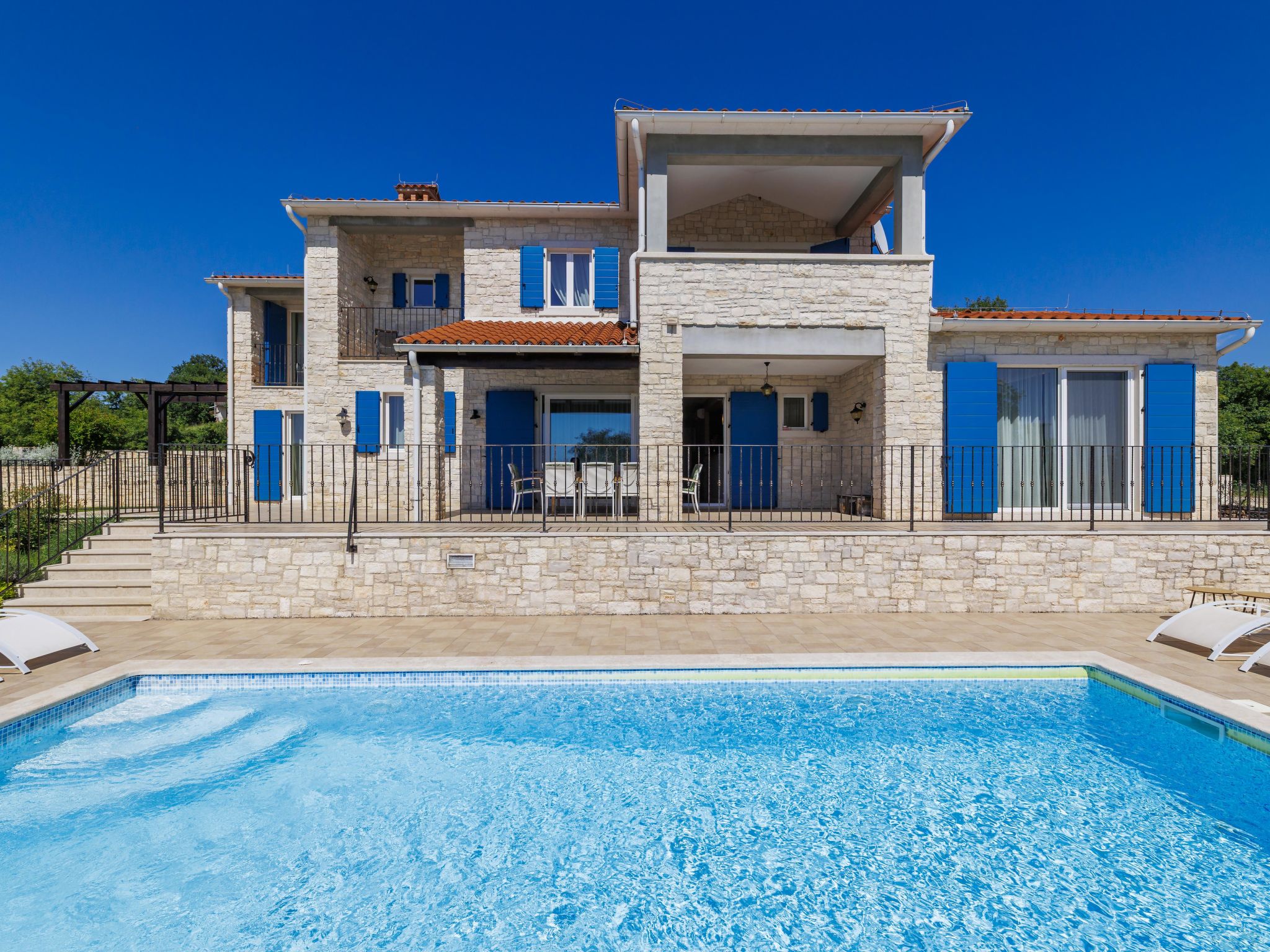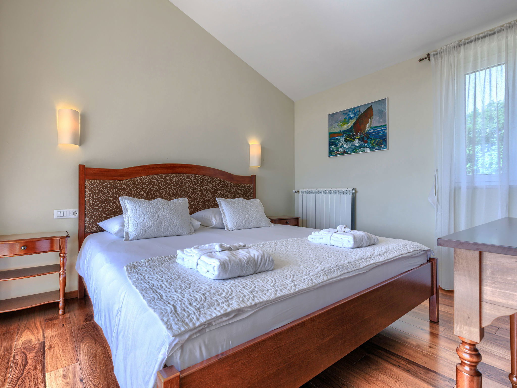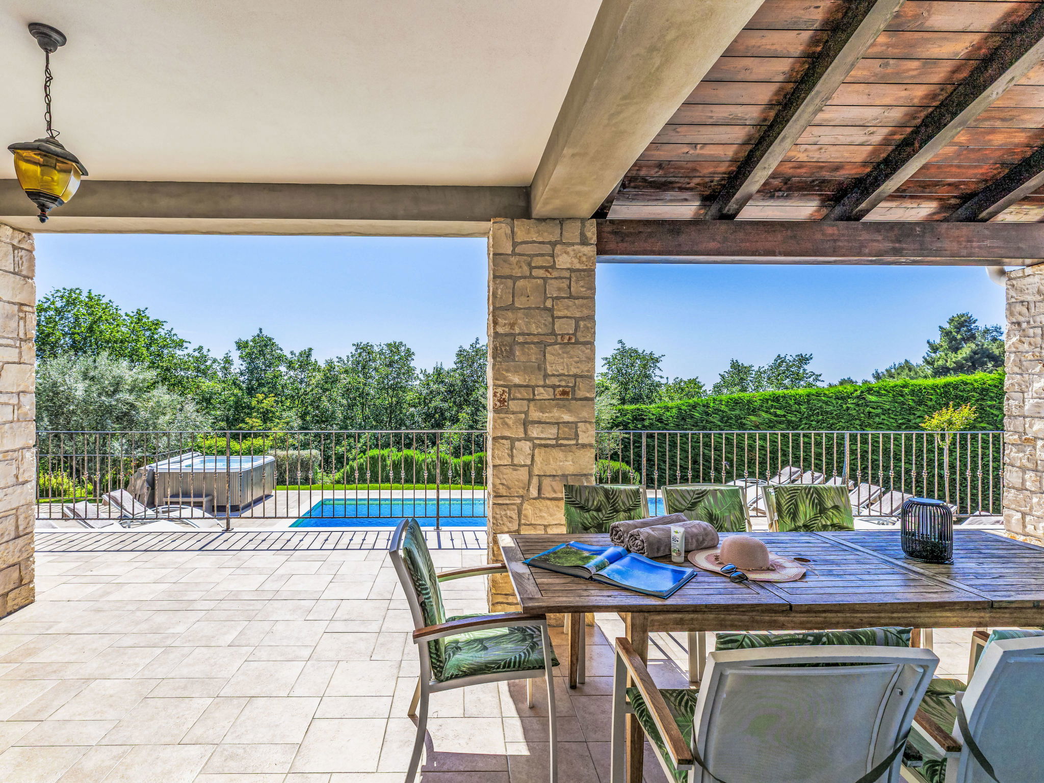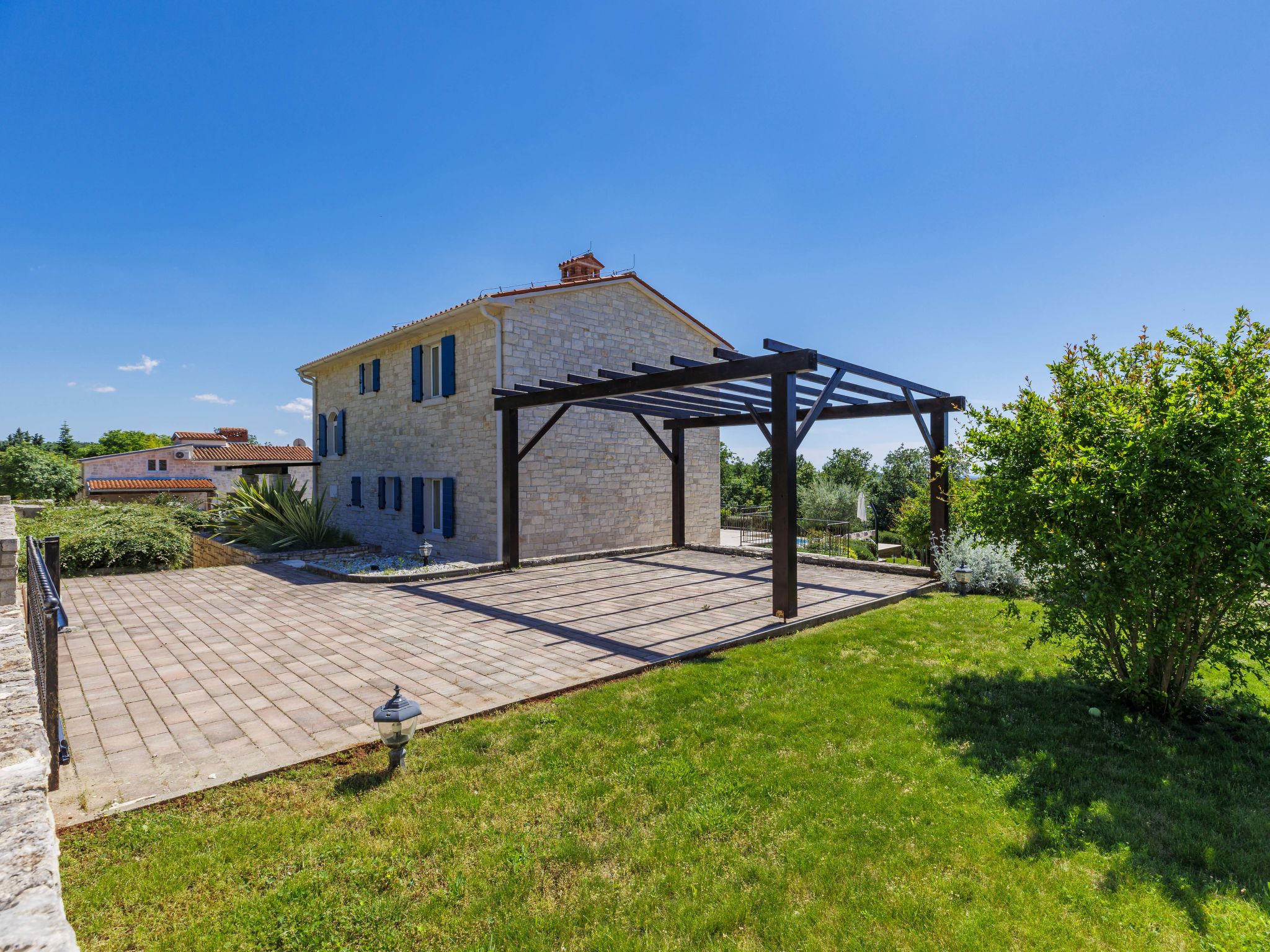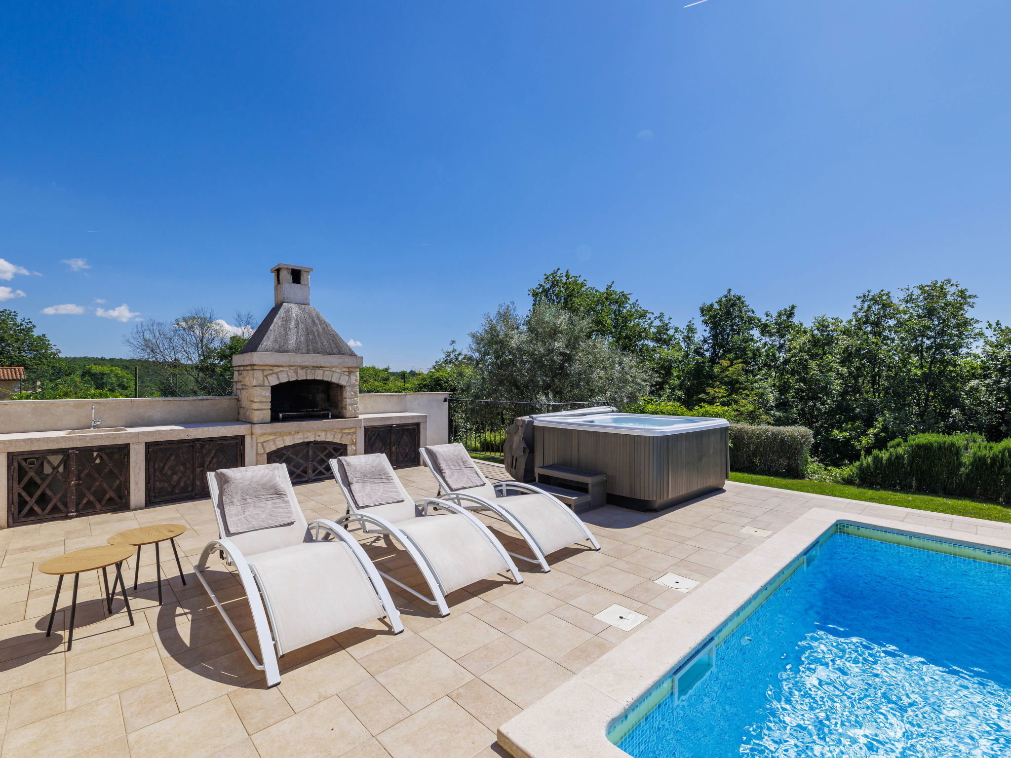 Beautiful villa "Babudri", 2 storeys. In the hamlet Strpačići 2 km from the centre of Višnjan, 12 km from the centre of Poreč, in a sunny position, 15 km from the sea, 15 km from the beach. Private: property 1'120 m2 (fenced) with lawn, swimming pool angular, heated (4 x 8 m, depth 140 cm, seasonal availability: 01.May. - 01.Nov.) with internal staircase. Outdoor shower, hot tub, garden furniture, barbecue. In the house: internet access, sauna, washing machine, tumble dryer. Parking (for 3 cars) at the house on the premises. Supermarket 2 km, restaurant 2 km, bus stop 3 km, pebble beach 15 km, rocky beach 15 km. Walking paths from the house 100 m, cycle lane 150 m. Swimming pool heated (extra).