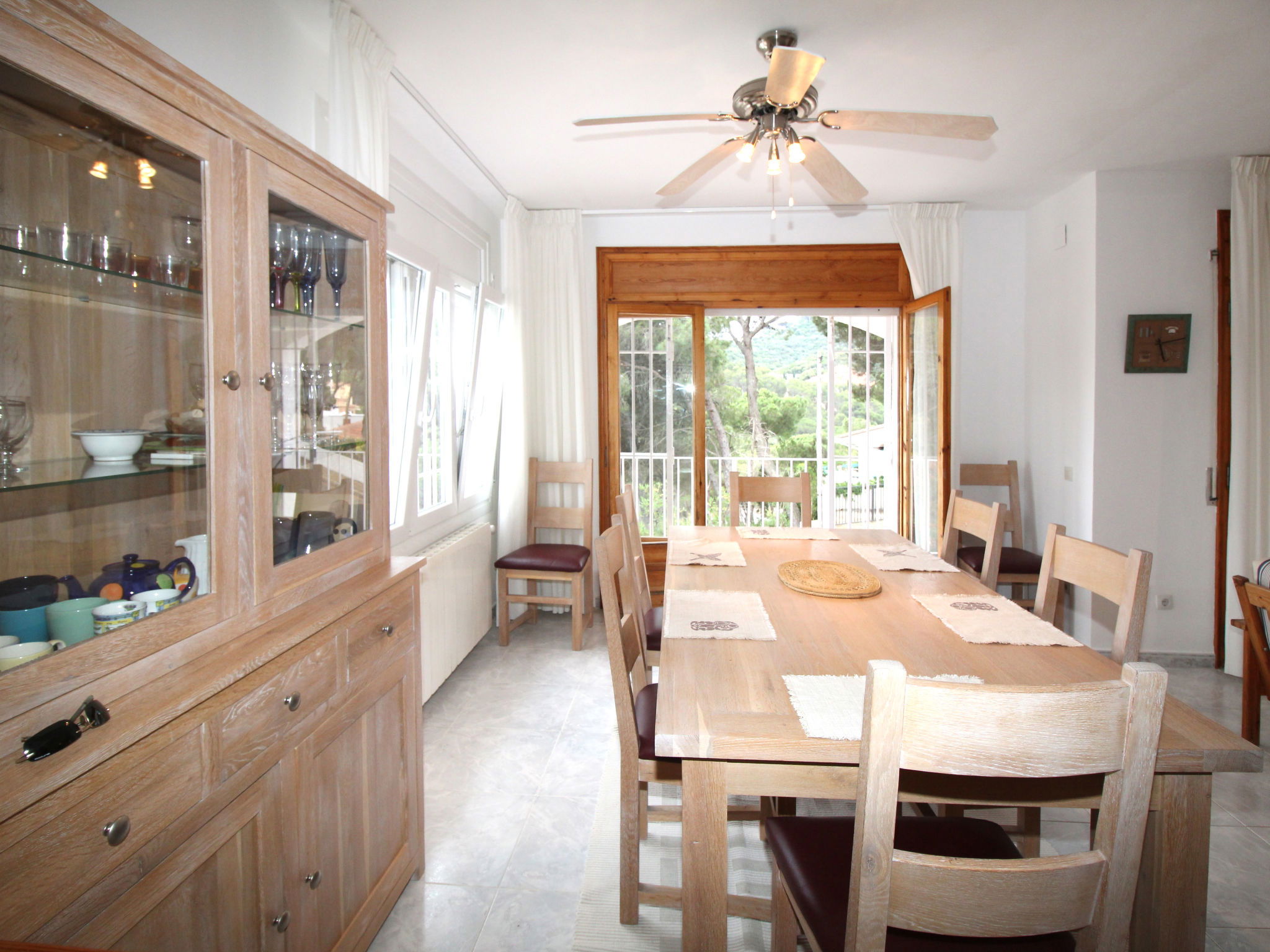 "Puig Vermell", 7-room house 150 m2 on 2 levels. Object suitable for 8 adults + 2 children. Beautiful and cosy furnishings: living/dining room with dining table, satellite TV and air conditioning. 1 room with 2 beds. 1 room with 1 french bed (150 cm), bath/WC. Exit to the terrace. Open kitchen (oven, dishwasher, 4 ceramic glass hob hotplates, toaster, kettle, microwave, freezer, electric coffee machine). Shower/WC. Upper floor: living/dining room with Scandinavian wood stove, dining table and satellite TV. Exit to the terrace. 2 rooms, each room with 1 french bed (150 cm). 1 room with 1 x 1 bunk beds (length 180 cm). Kitchen (oven, dishwasher, 4 ceramic glass hob hotplates, toaster, kettle, microwave, freezer, electric coffee machine). Shower/WC, sep. WC. No heating option. Balcony, 2 terraces partly covered. Terrace furniture, balcony furniture, barbecue, deck chairs (10). Facilities: washing machine, baby cot. Internet (WiFi, free). Maximum 2 pets/ dogs allowed. No internal connecting door between the floors. HUTG-034588 // Reg. Nr.: ESFCTU00001700700034923800000000000000HUTG-034588-620