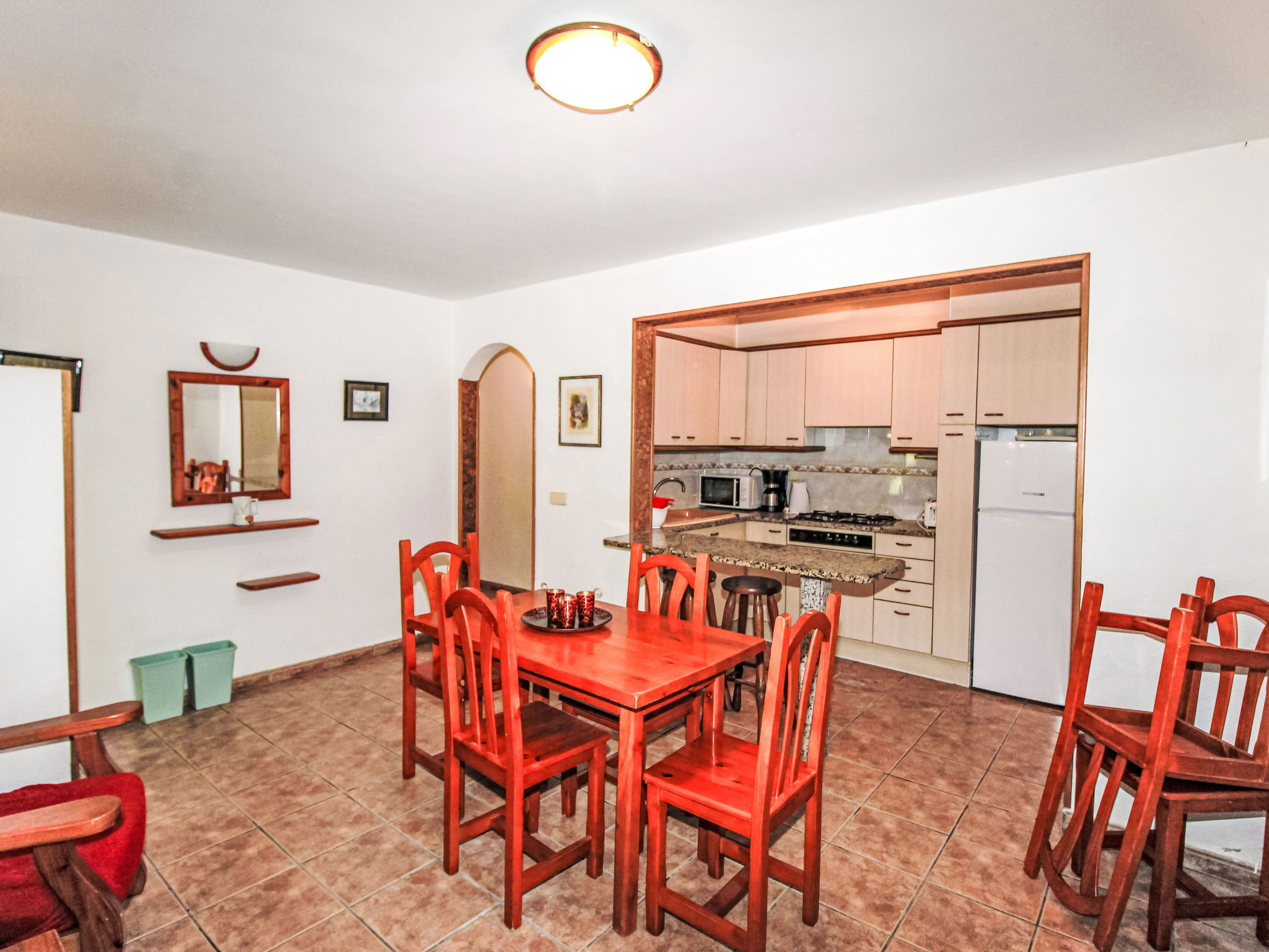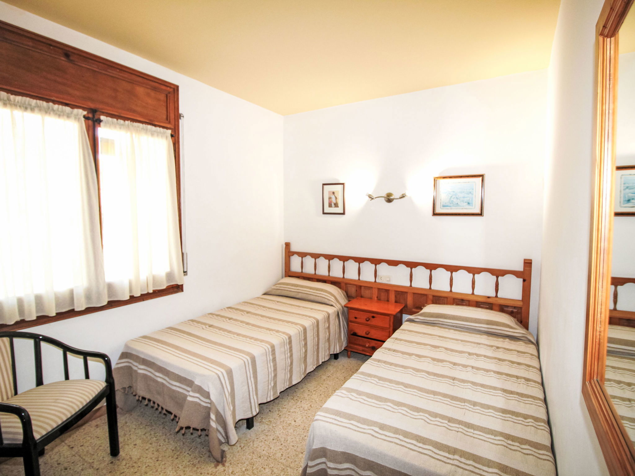 "Torre Mitjorn", 6-room house 200 m2 on 2 levels. Simple and practical furnishings: living/dining room with digital TV. 1 room with 2 beds (90 cm, length 190 cm). 1 room with 2 beds (90 cm, length 190 cm). 1 room with 2 beds (90 cm, length 190 cm). (4 hot plates, dishwasher, microwave, freezer, electric coffee machine). Bath/WC. No heating option. On the lower ground floor: 1 room with 1 french bed (135 cm, length 190 cm). 1 room with 2 beds (90 cm, length 190 cm). Kitchen (4 hot plates, microwave, freezer). Exit to the terrace, to the swimming pool. Shower/WC. Terrace furniture, barbecue, deck chairs. Facilities: washing machine, iron. Internet (WiFi, free). Please note: maximum 2 pets/ dogs allowed. TV only ES. No internal connecting door between the floors. HUTG-007430