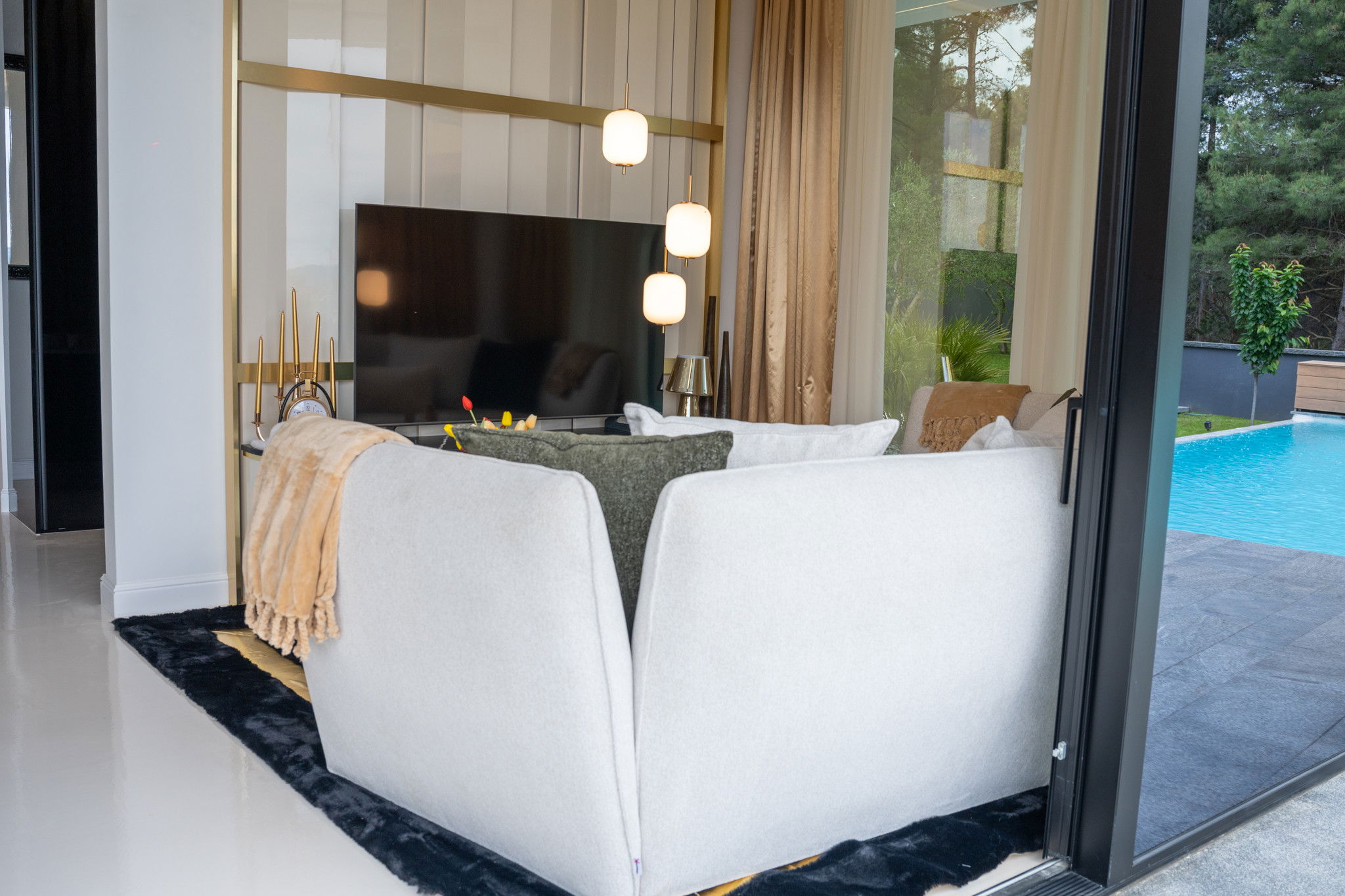 The modern and beautifully decorated kitchen is equipped with everything you need to prepare meals for family or friends, and there is also a beautiful dining room with a dining table. Also, the villa offers a sea view from the kitchen and living room.