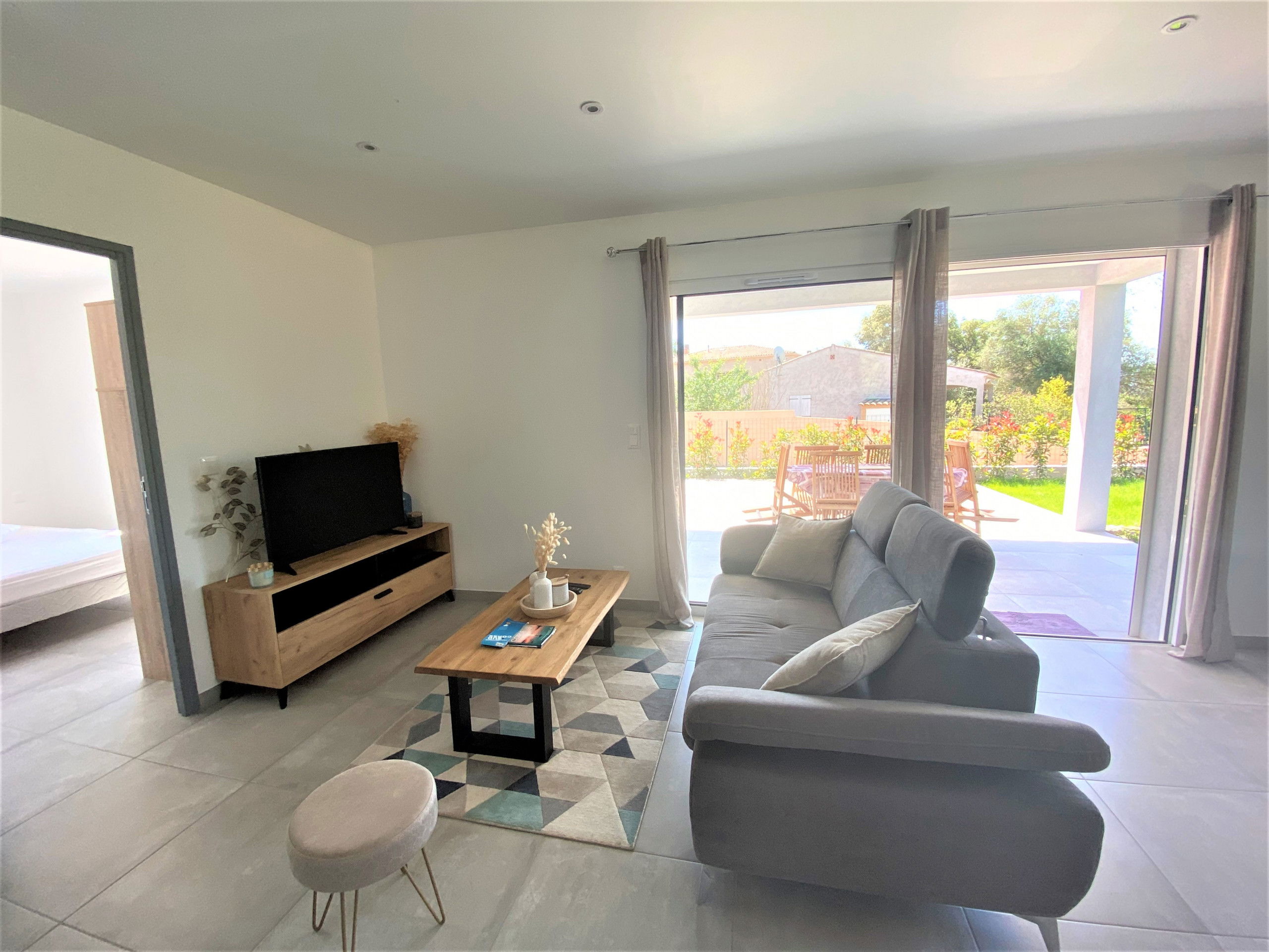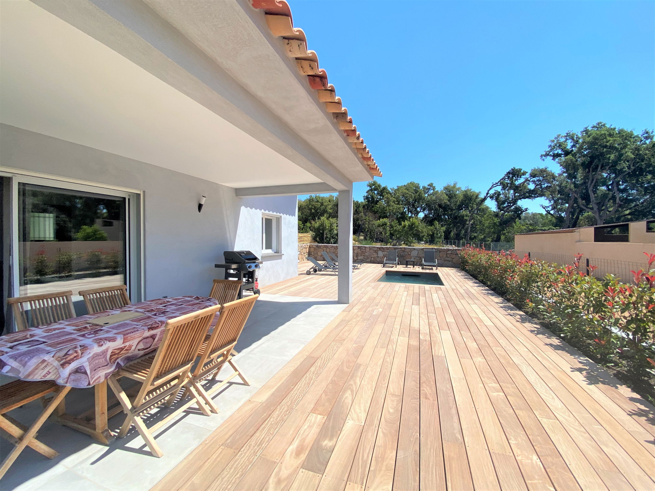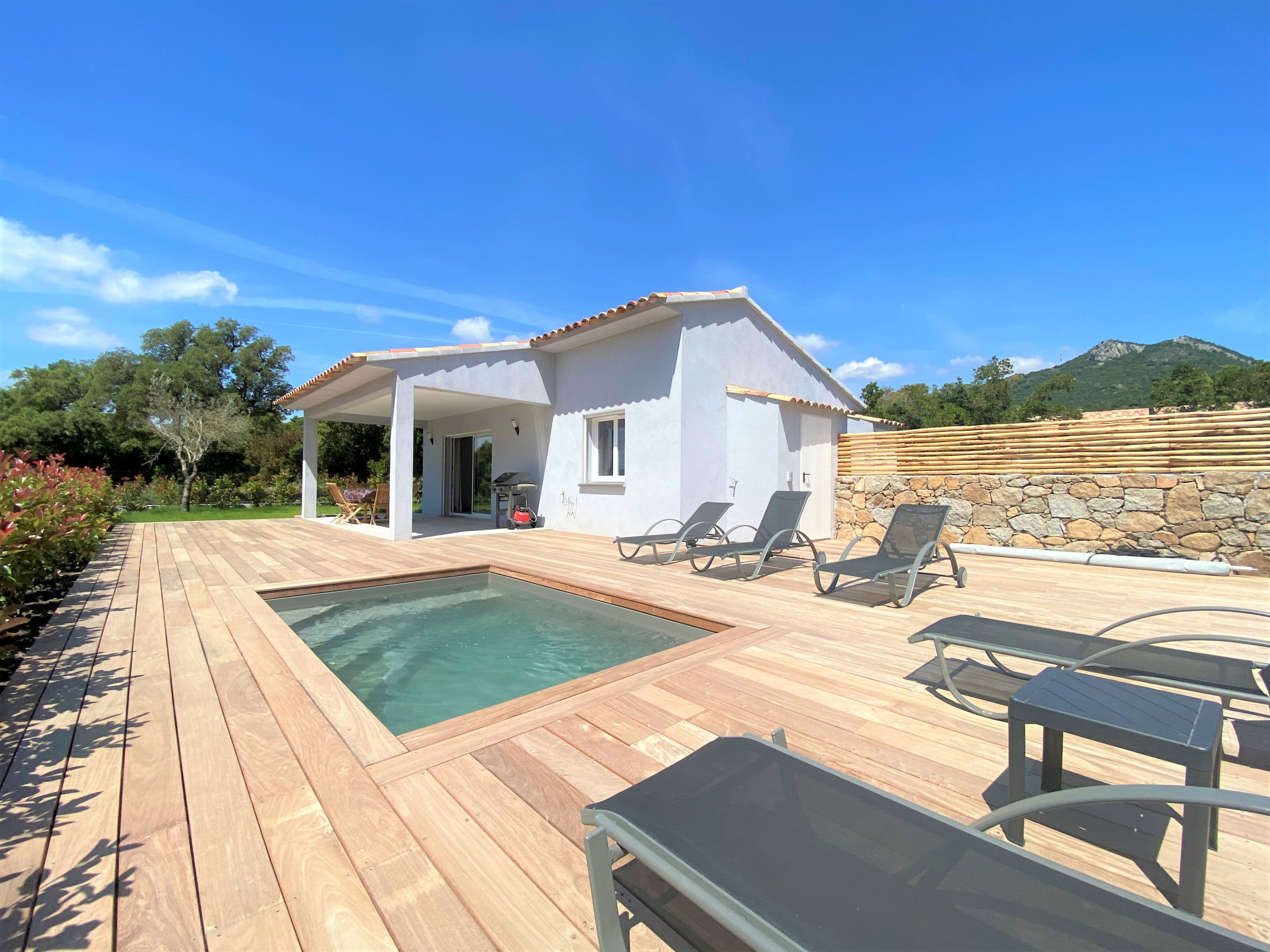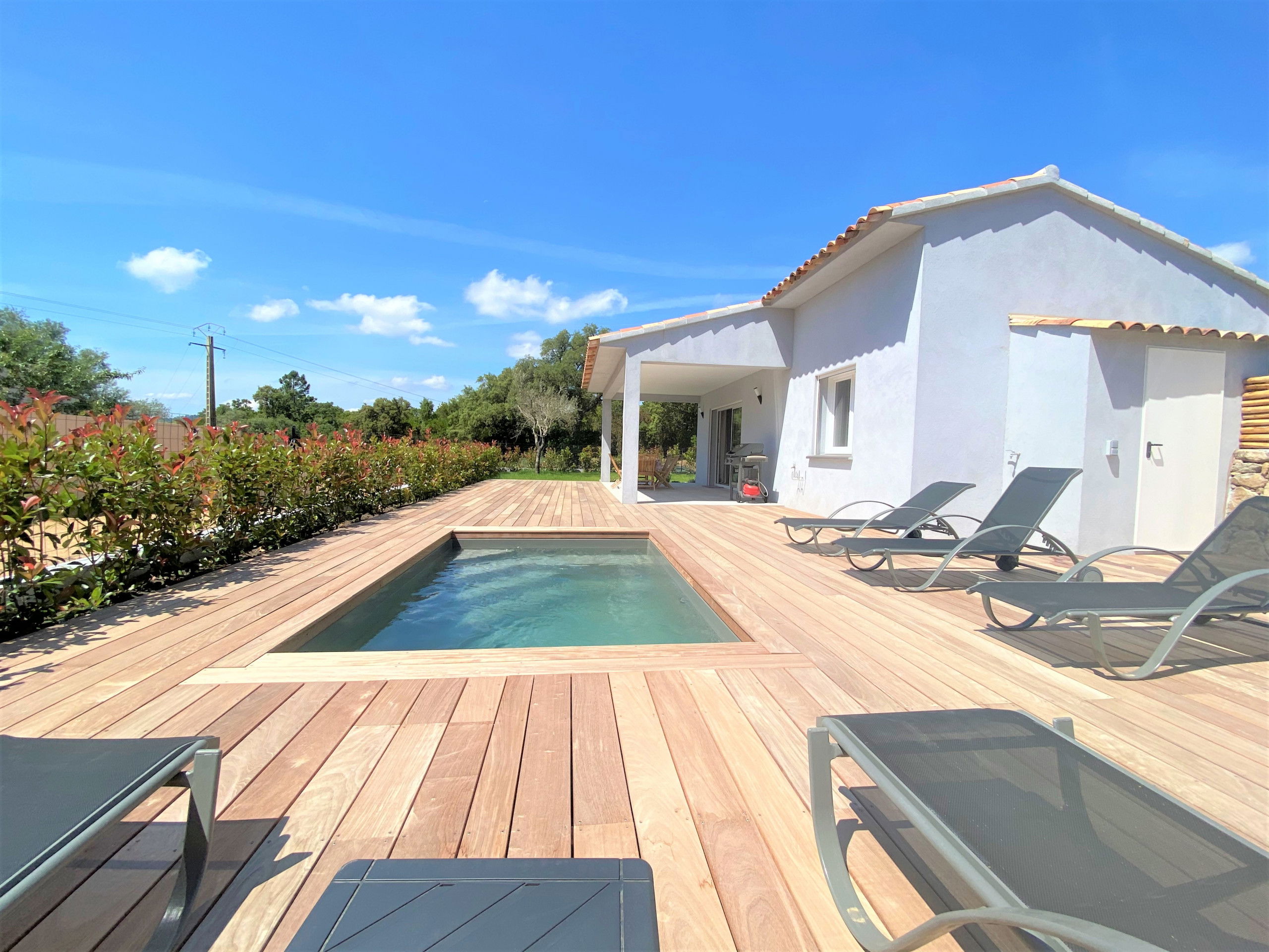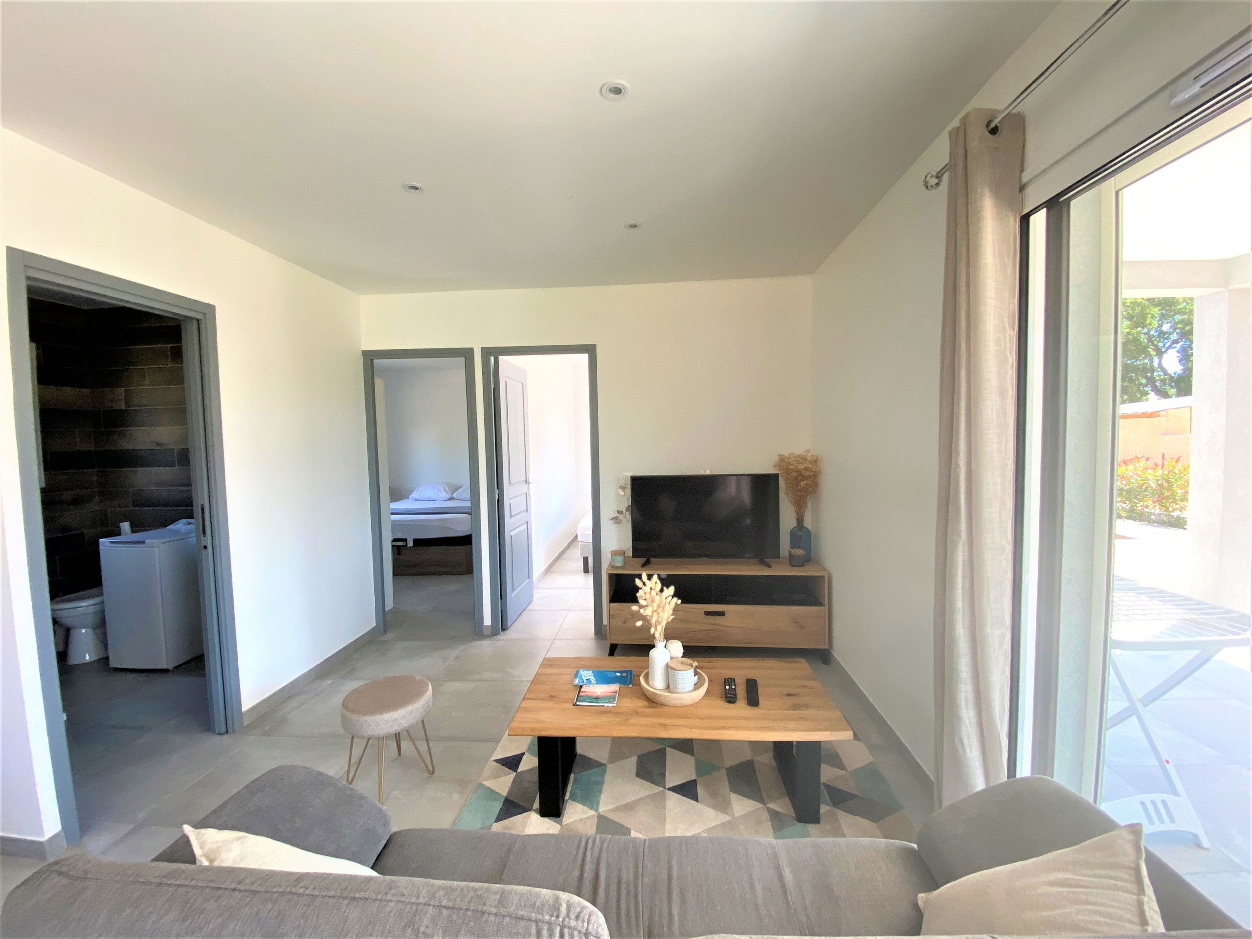 New and fully equipped villa of 55 m² with 2 bedrooms located in a quiet area with a nice landscaped garden of 400 m² fully fenced with a large terrace in IPE with heated and secured swimming pool.